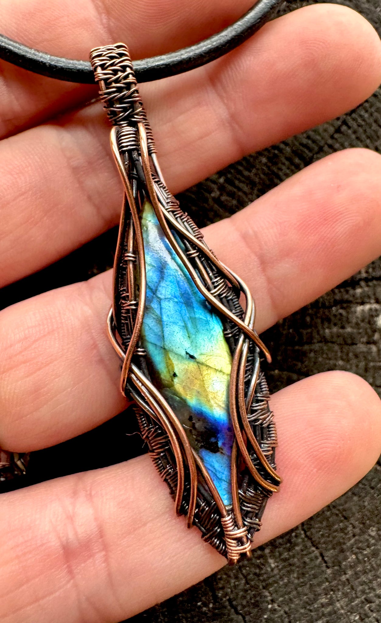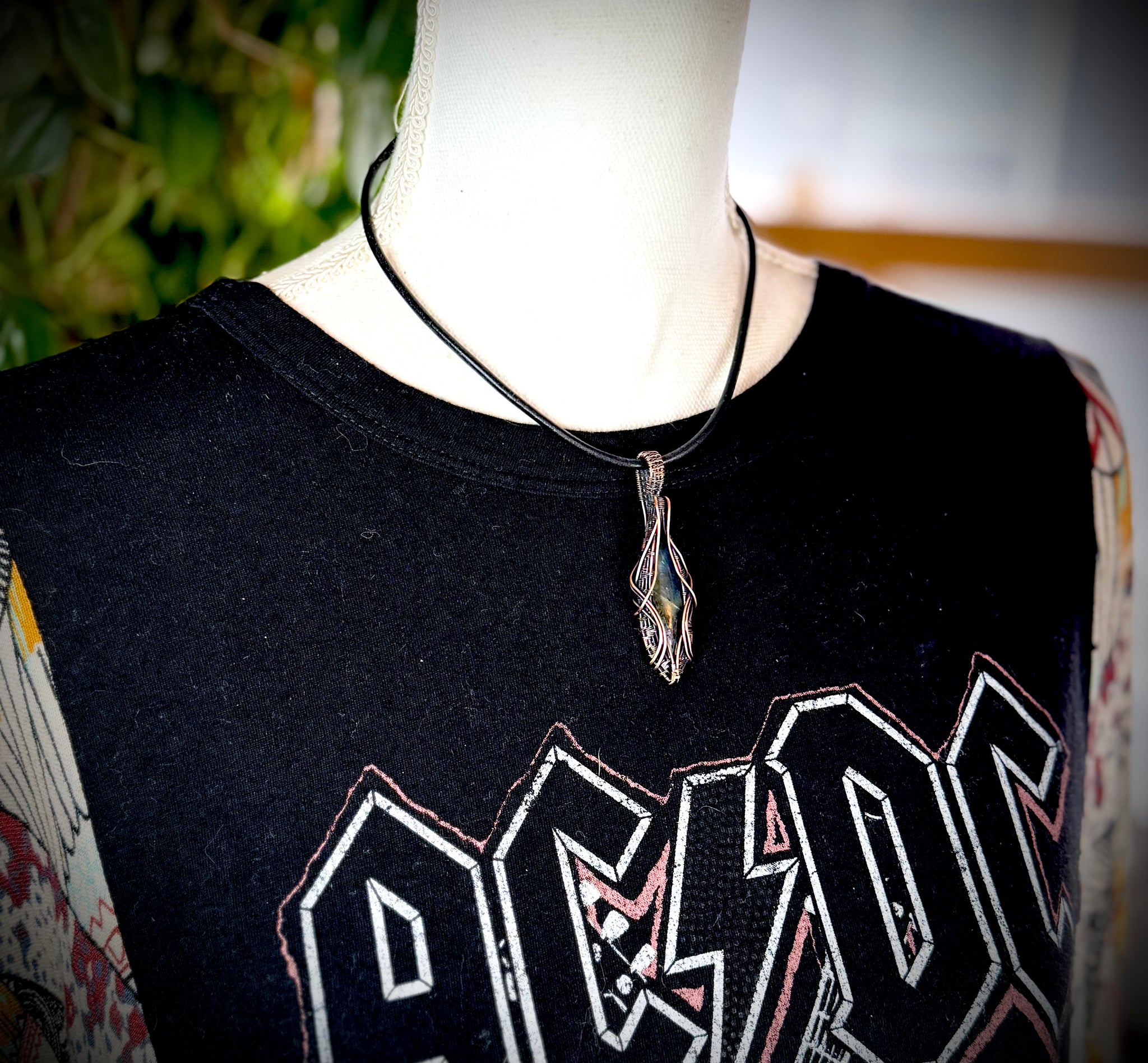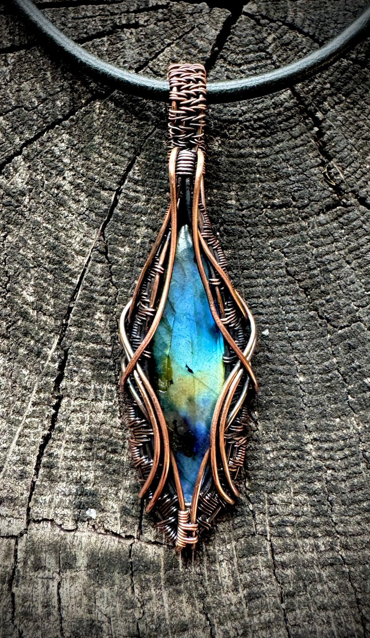 A brand new design from WWD that I haven’t shown anywhere but here! This is the new Candace wrapped, that’s around a very flashy rainbow Labradorite horse eye stone. The colors within the Labradorite are simply stunning and eye catching!